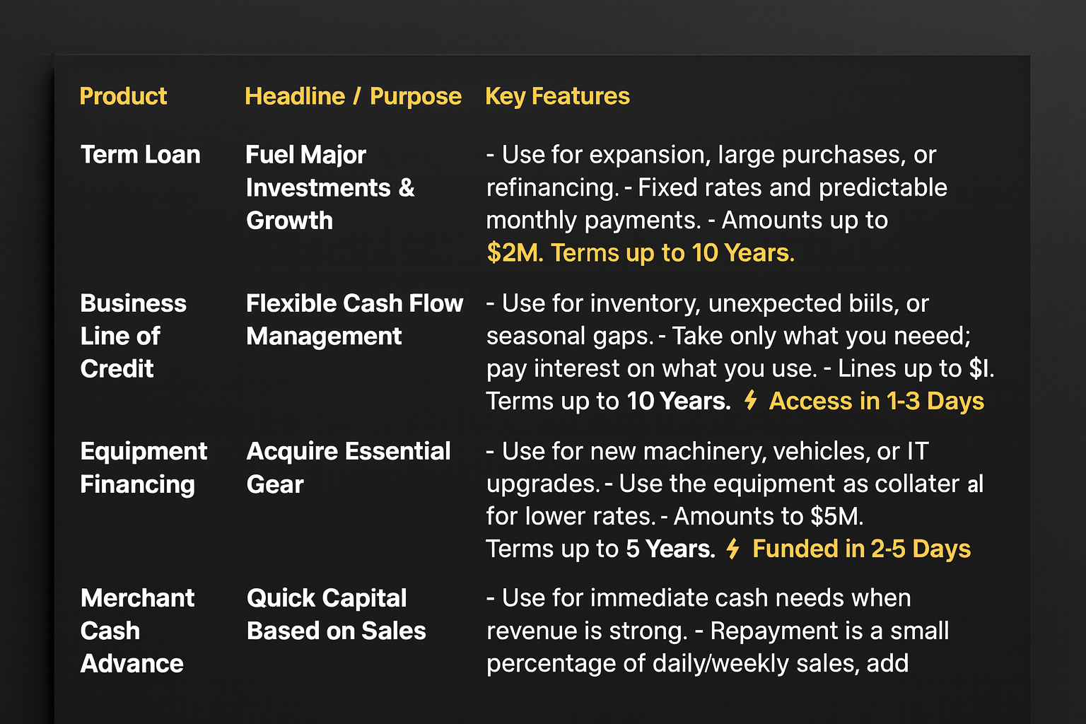 Best Terms: We find options tailored to your business model, not generic bank terms.
